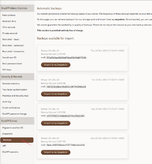 - 若要将此快照导入到另一个 VPS,可使用其 “export” -> “Import a snapshot” 功能。