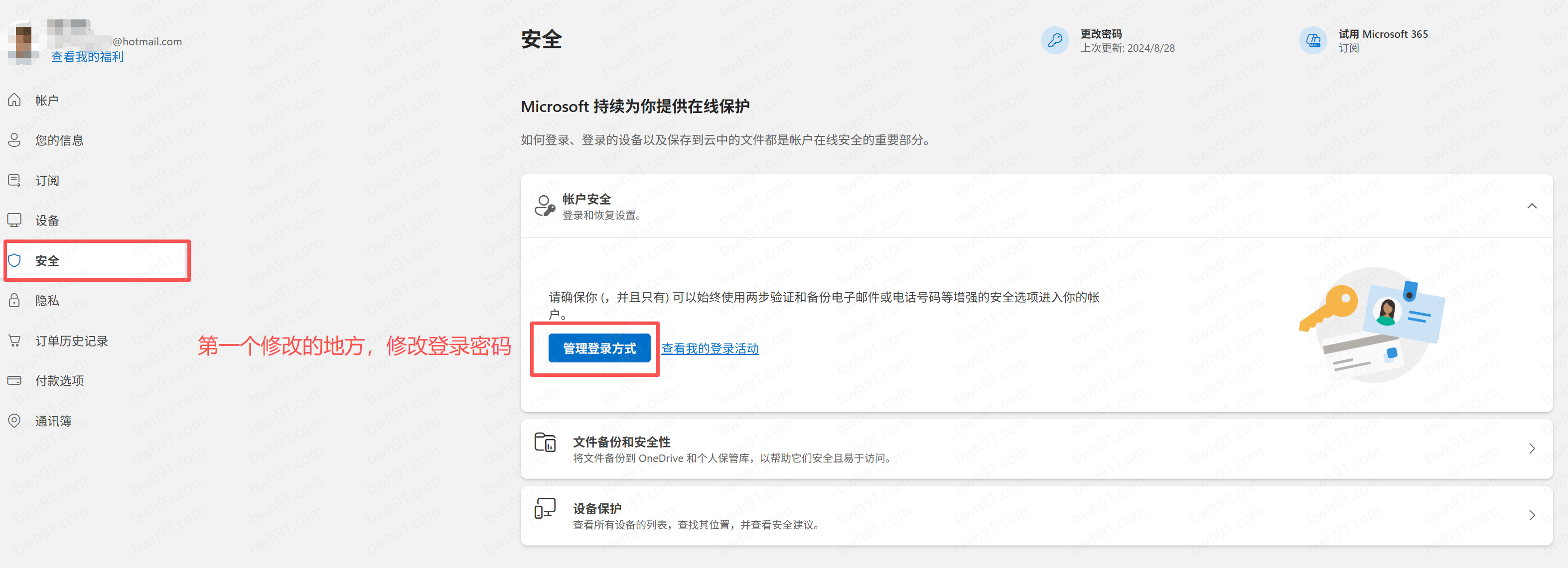 二、第一个需要修改的地方–>登录outlook安全中心——安全——管理登录方式