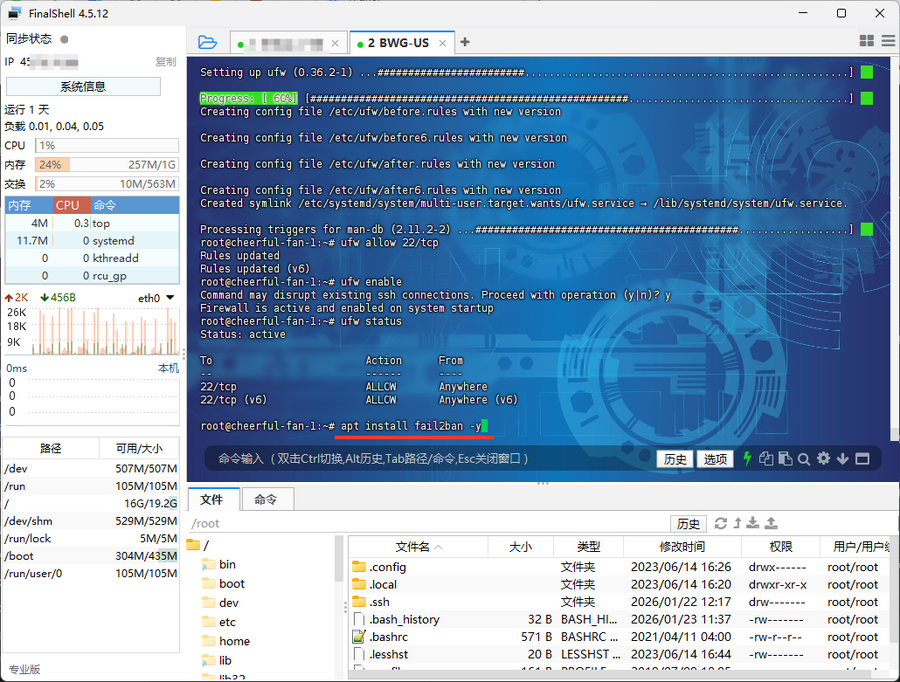 如何在搬瓦工服务器上安装ufw防火墙和Fail2ban来防止黑客暴力破解