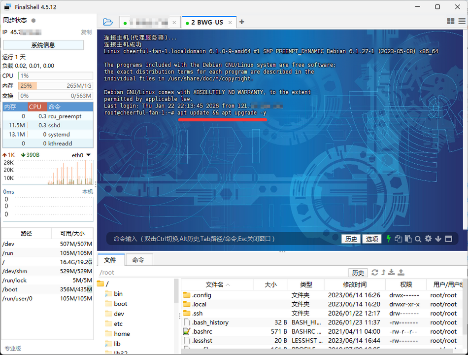 安全的第一步永远是保持软件最新。连接 SSH 后,执行以下命令更新软件包列表: