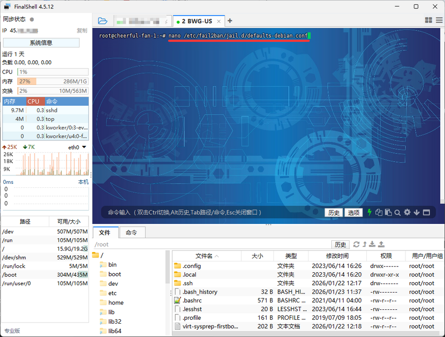 第三步:部署 Fail2Ban (适配 Debian 12)