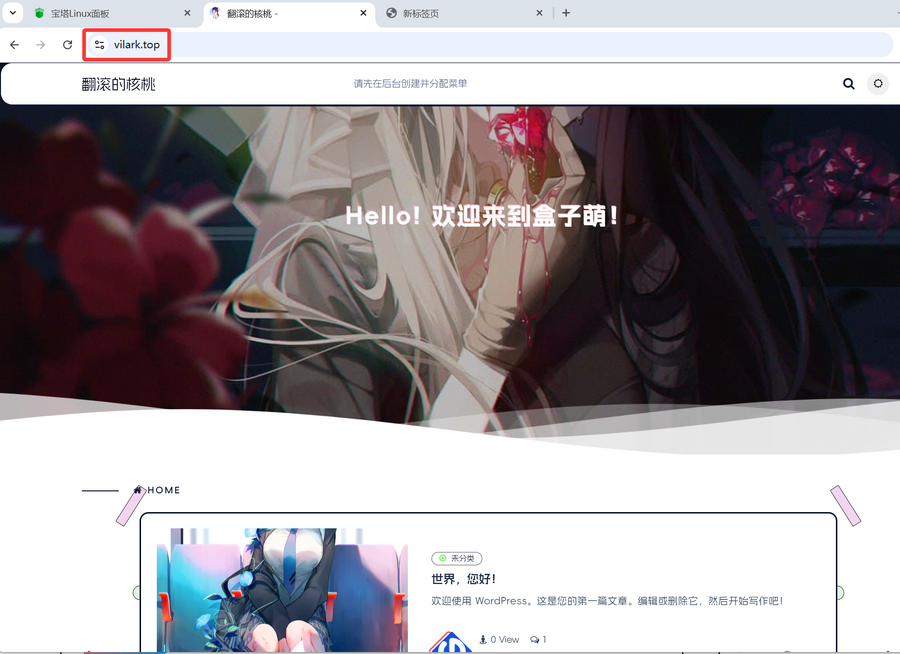 至此,WordPress博客程序已成功部署,浏览器访问域名,就能看到你的网站了。