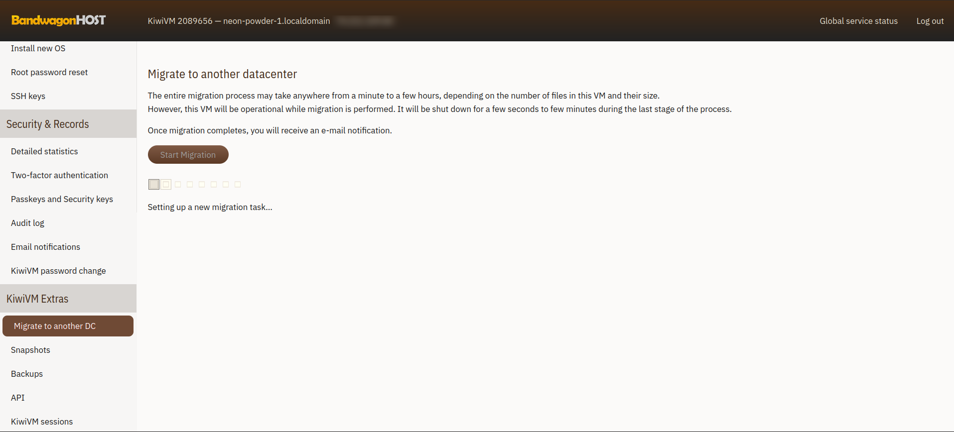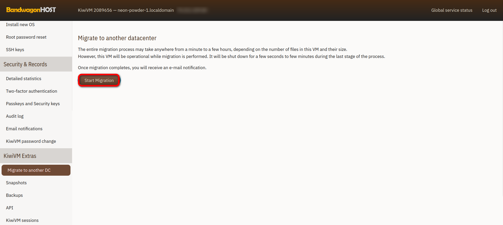 本文按照实际操作顺序,详细讲解 KiwiVM 面板的完整使用流程:从如何正确进入面板开始,到常用开关机操作、重装系统、重置密码、开启与关闭 2FA、快照全生命周期管理,最后到机房迁移。