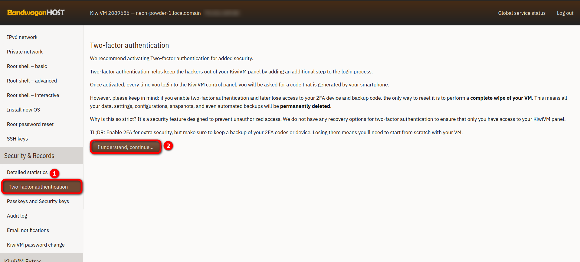 1. 左侧 Security & Records → Two-factor authentication再点击 I understand, continue...。