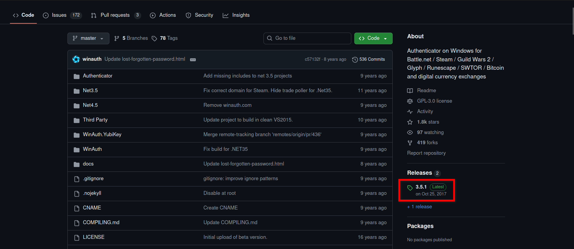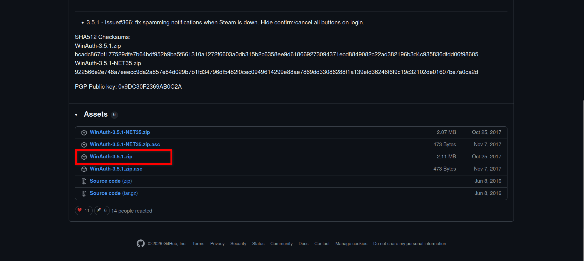 2. 选择 Windows,下载 WinAuth 3.5.1(GitHub Releases)。