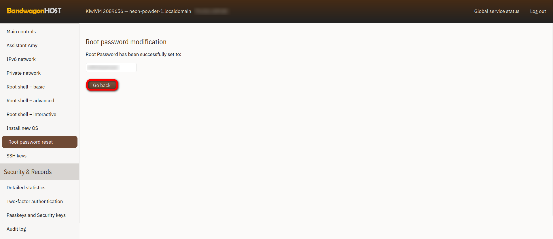 1. 左侧点击 Root password reset,再点击 Generate & Set New Root Password。